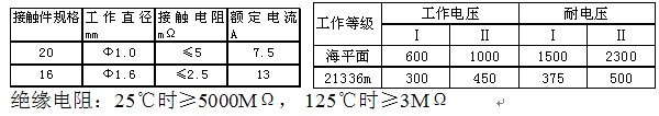 接觸件接觸電阻及額定電流:A 工作電壓及耐電壓:V